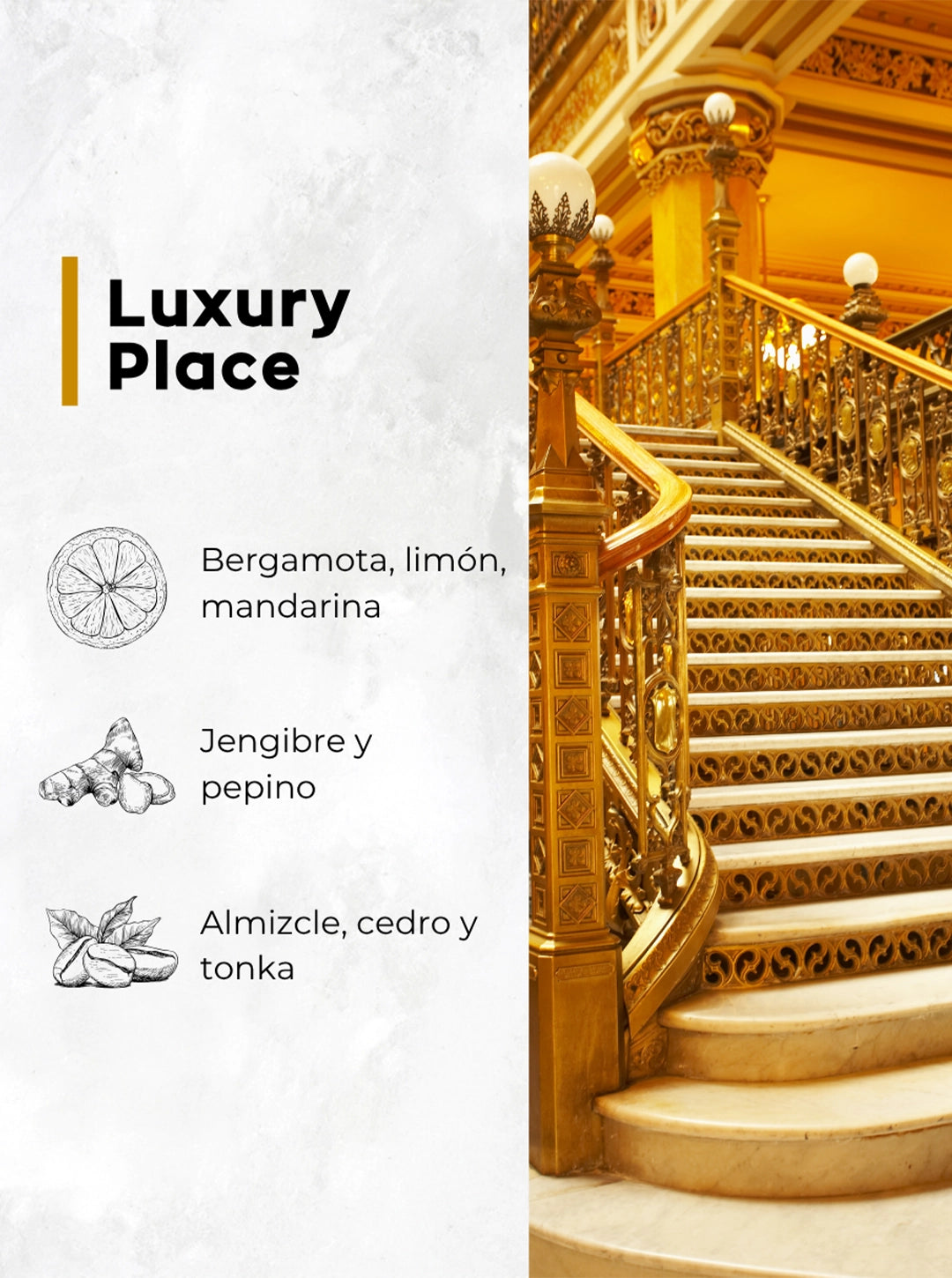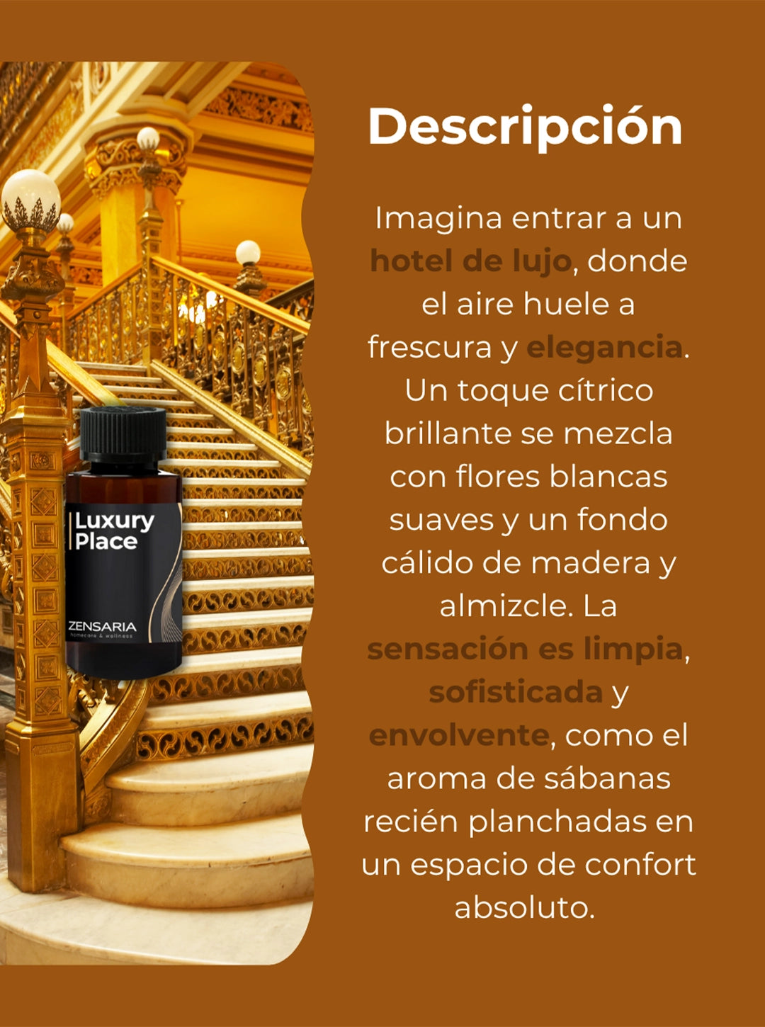 Luxury Place es recomendado para: hoteles, restaurantes, spas, oficinas ejecutivas y espacios de relajación premium.