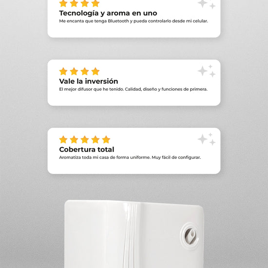 El difusor de aromas Apollo es ideal para espacios amplios; ya sea hogar, oficina, una sala de ventas, una tienda, etc. Con un alcance de aromatización de 400m3 a 600m3, puedes programar horario e intensidad de acuerdo a tus necesidades.