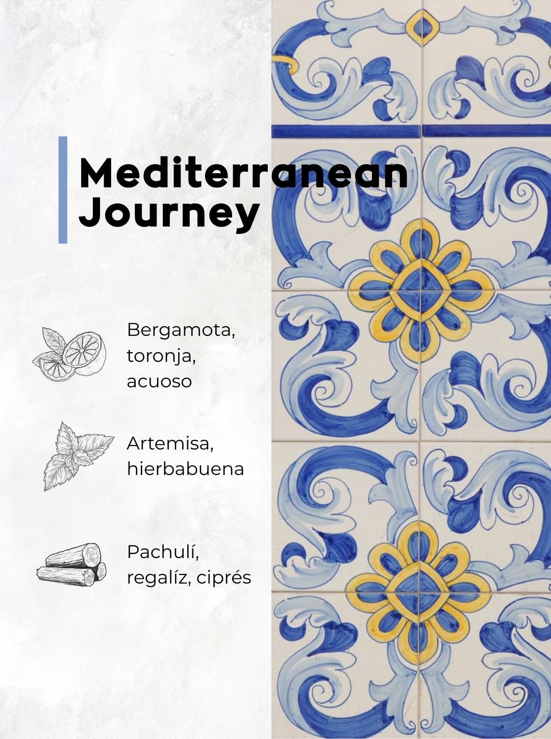 Una fragancia fresca y moderna que evoca la brisa del Mediterráneo. Notas de artemisa, menta y cilantro se mezclan con la frescura del pomelo y bergamota, creando una atmósfera vigorizante y elegante. El fondo de maderas suaves, pachuli y ciprés se envuelve en un toque aterciopelado de azafrán y un sutil acento de regaliz negro que aporta profundidad y carácter. Perfecta para quienes buscan un aroma refrescante con una presencia sofisticada.
