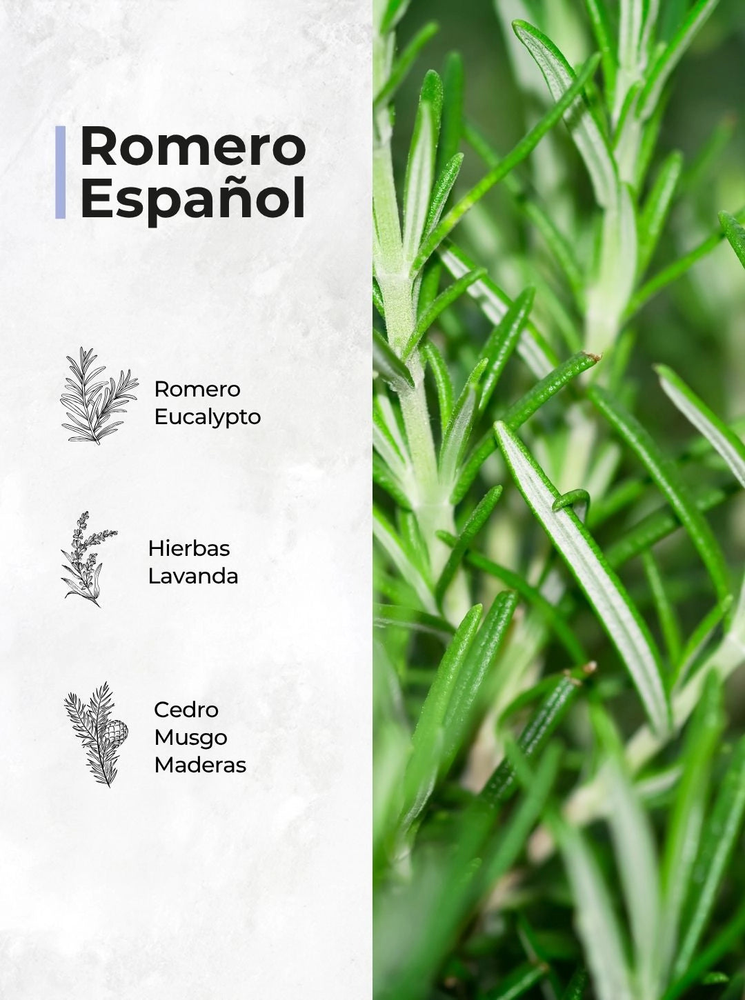 Imagina una caminata por un jardín mediterráneo al amanecer, donde el aire huele a romero recién cortado, eucalipto fresco y un toque suave de lavanda. Romero Español es una fragancia herbal y sofisticada que limpia, despeja y revitaliza los sentidos.