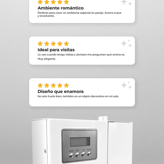 Larga Duración. Su gran potencia combinado con su bajo consumo, te ofrece el mejor rendimiento en aromatización. Con un uso de 8hrs de lunes a viernes con una intensidad media, el aroma le puede durar de 25 a 30 días.